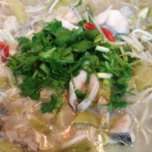 最后一步,装盘。撒上切好葱花和香菜,鱼香四溢的酸菜鱼就做好了。