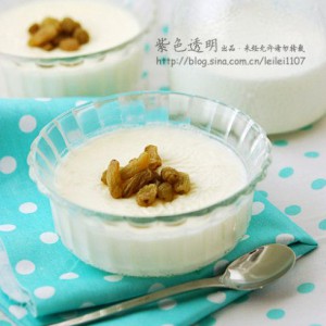 然后顺着之前划破奶皮倒出牛奶的口,继续把混合后的牛奶蛋白液倒回碗中,此时碗底的那一层奶皮会自己浮上来。