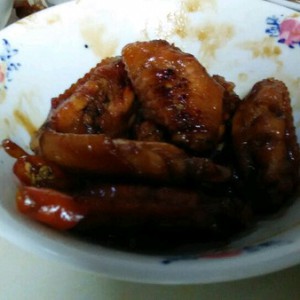 放入炒锅蒜生姜辣椒油,锅热后放入鸡翅,先煎出颜色。