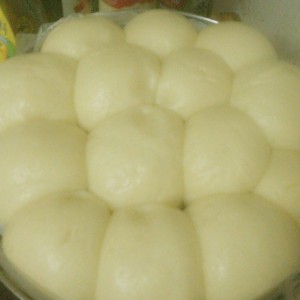 将面团揉光滑后平均分成若干粉揉成球状,置于蒸盘发酵20分钟