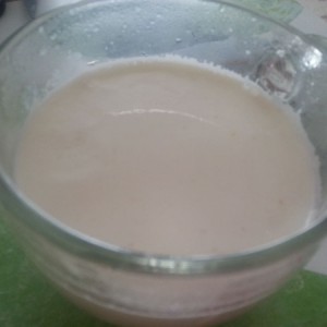 把牛奶从稍高处倒入装姜汁的杯中,不用搅拌,静置五六分钟即可。