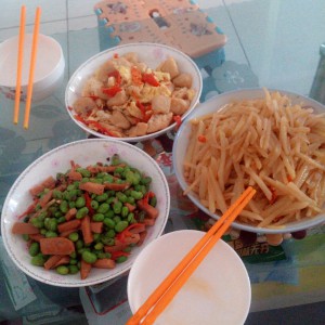 不错吧,色香味俱全,只是粥还没好,先吃菜吧-ps:我们家只有甜醋所以土豆有点变色了,