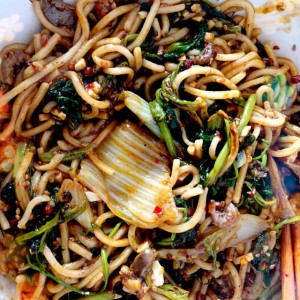 出锅前 加入少许盐 鸡精 芝麻 孜然等调料 出国后放少许香油!