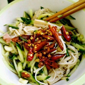 把热油到入碗里。(碗里千万不要有水,不然油会飞溅)炸完辣椒会很香。放入凉菜里,拌开!不喜欢吃辣椒的可以省略这步!