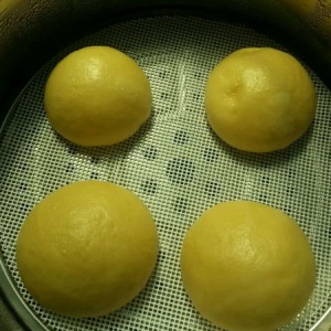 发酵好的面团用手揉匀,并分成八个等量大小的小份,搓成小圆团,放进蒸锅,蒸锅里放适量温水(约四十度),盖好盖子二次发酵约二十分钟,面团涨大1.5倍,就可以开火蒸了。用电磁炉蒸的,可以先开最高,待水汽上来后改1600度蒸二十分钟就好