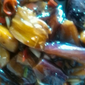炒锅放油,七成温放茄子,翻炒到茄子均匀着油后加姜蒜泡椒末少量葱粒,炒出味后加豆瓣,略炒一会儿加少量水把茄子闷至完全成熟,下剩下的葱粒和糖醋汁收汁起锅!