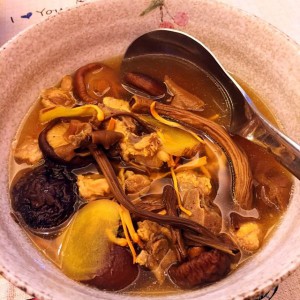 准备好食材,排骨斩成小块,虫草花、茶树菇洗净,香菇泡发,我是因为没去买菜,才使用了干货的菌菇,如果有新鲜的茶树菇和香菇会更好哦~