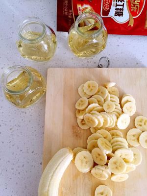 然后把切好的香蕉片放进去就可以了。密封冷藏24小时就可以吃了。