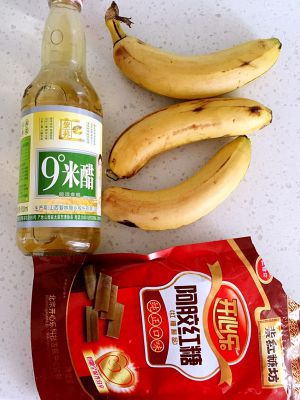 准备无水无油的干净瓶子,里面倒入半瓶米醋,把香蕉切成片。