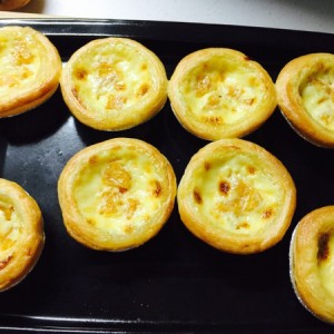 烤箱预热十分钟,把蛋挞放入烤箱,温度230度,时间20分钟