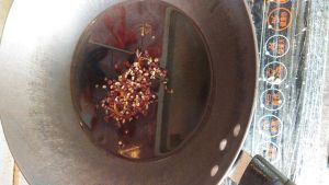 用木铲熬制搅拌,小火,不然辅料就胡啦!待熬出香味后捞出辅料