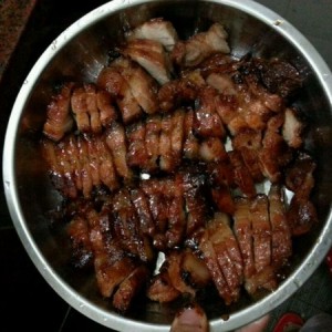 第2天把肉拿出来,烤箱预热180度,上下火180度,烤40分钟后,刷一层蜜糖再烤5分钟