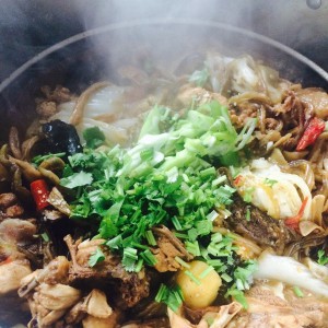 自家晾的干菜,头一天晚上就泡好,有豆角干,土豆干,笋子干,花菜干,木耳和香菇是买的