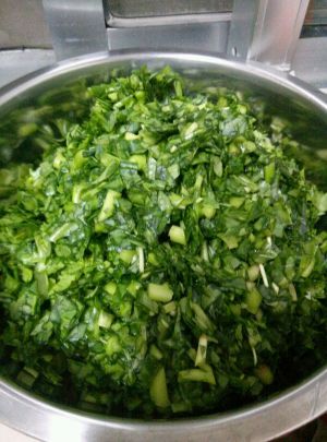 把青菜剁碎,控一下水,水太多会用到很多面粉(来自第一次的经验)