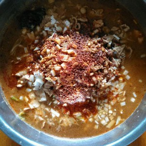 炒锅放电磁炉上热一下,吧单县豆瓣酱炒一下,家里没有豆瓣酱的红99也行,在锅里加水,看你的肉和菜多的说豆瓣酱多放些水也多些。