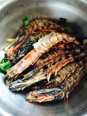大虾洗净去胡须,背部切开去虾线!放适量料酒和盐,葱姜腌制30分钟以上。