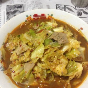 (这段实在是太快,来不及拍照)辣椒粉,盐,一点点耗油,放进肉片里翻炒均匀后加入菜继续翻炒。