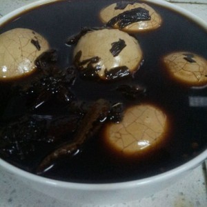 2.鸡蛋敲碎蛋壳,锅中加热水,倒入调料,加入鸡蛋,水没过鸡蛋即可。