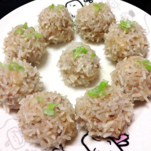 将肉揉成肉圆,外表裹上糯米,隔水蒸即可~