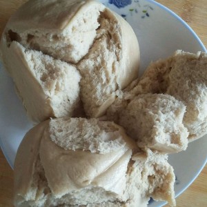 出锅咯,这花开的,被儿子拿走一个,那半个已经被我吃掉了。红糖有点放少了,下次多放点。