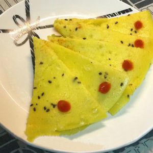 倒入面糊,然后撒上一些黑芝麻,小火煎