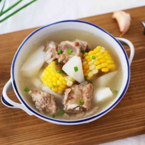 排骨斩成小块,玉米切段,葱姜蒜切片