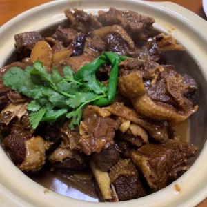 没照片了,然后把鹅肉倒入油锅翻炒,加调料(料酒、糖、生抽、老抽),翻炒,加适量水,大火煮开十分钟,转小火慢慢炖,差不多过半个小时,加适量盐,再小火炖着,直到汤水较少了,大火收一下汁,就可以出锅了
