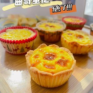 g一个分团,装入模具中按平4⃣️蛋挞液倒入曲奇挞皮中5⃣️烤箱提前预热上火190度,下火180度,将曲奇蛋挞放入烤箱中烤20分钟左右饼干边缘上色,挞液出焦斑就可以出炉啦