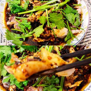 浇入鸡腿上,放入香菜,家庭版口水鸡夏季开胃爽口