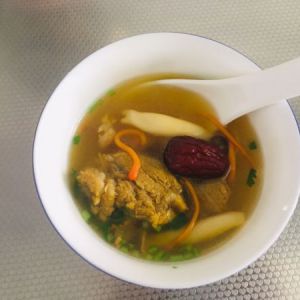 砂锅内放入准备好的排骨,加入清水(沫过排骨)将准备好的材料一起放入锅内,(料酒可根据个人口味添加)小火慢炖30分钟,加入少许食用盐。开锅后即可食用。
