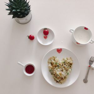 煎熟后出锅,摆成爱心状,配上番茄酱