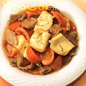 锅内放底油,放入葱、姜末、番茄酱炒出香味,加入糖、盐、料酒、味精、汤100毫升,把豆腐放入用微火焖,勾芡汁,出勺前淋入少许明油即可。