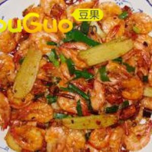 把配料加入炸过虾的热油中,炒至香味出来,加入炸过的虾,加入盐,翻炒一下就可以了