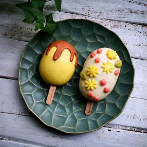 雪糕棍儿可以先预埋在里面,也可以蒸熟了再插。
