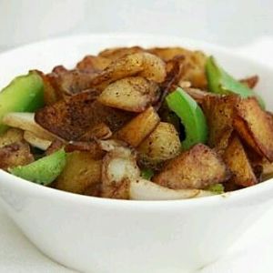 炒出香味后放入青椒翻炒约一分钟后再放土豆,想要有汤汁可以加水炖煮一会儿,若想吃到类似回锅肉效果的土豆就直接干煸吧。