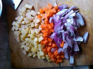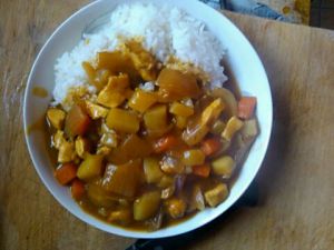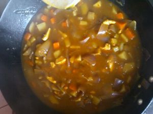 关火 把咖喱掰成块 放入锅中 一定要关火欧 等到咖喱块完全溶解