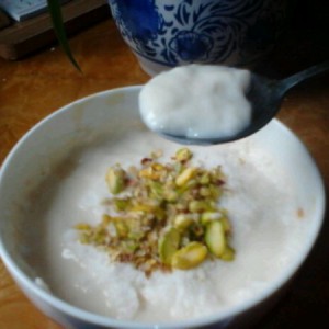 牛奶热后取出放凉出现一层奶皮 沿边开小口倒牛奶入蛋清里 将拌好奶液与蛋清液再重新倒入有第一层奶皮的碗里 盖保鲜膜