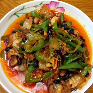 锅内放少许油,油热后倒入肉片爆炒片刻然后将肉片捞出(锅内油一定要热,这样肉片上肥的部分就会出油,吃起来不腻而且糯),用锅内余油炒香姜、蒜、豆瓣酱,出味道后倒入肉片、料酒、豆鼓、酱油、青椒不断翻炒1-2分钟,时间自己控制,注意不要把肉炒得太干了,一般来说都可以不用放盐了,因为豆瓣酱和豆鼓都是咸的,看自己情况决定要不要放盐和味精。