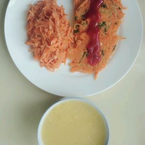 然后加入面粉,让胡萝卜丝裹上一层粉就可以了,注意不要加水哦