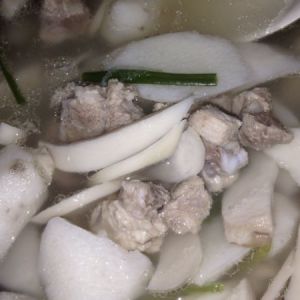 把排骨加姜一起放水里焯掉血水捞出排骨,把3种主料加足水一起放锅里煲40分钟,关火前加入配料就可以开喝了,少油又鲜美的汤就出锅了。。。适合减肥的你
