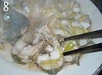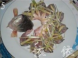 8. 把鱼取出,用筷子夹走姜丝和葱白丝