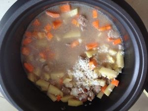 最后倒入淘好的米,加入适量的水,进行烹煮