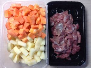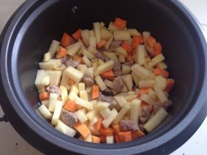 羊肉,土豆,胡萝卜洗净后切丁备用