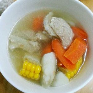 重新做一锅热水,把排骨放入,大火烧开后改小火煮半小时左右,然后加入胡萝卜,山药,玉米,枸杞煮至排骨软烂即可。最后可依照个人口味加入盐调味就好了!