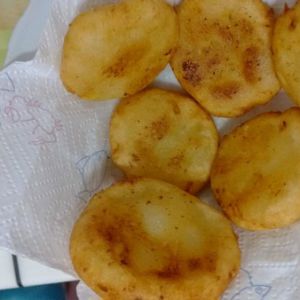土豆蒸熟碾成粉,加糖,糯米粉搅拌做成饼形,下油锅炸至金黄就可以了