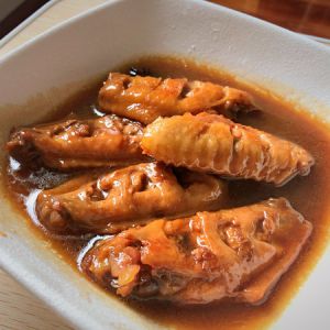 倒入可乐和酱油,加少许水,煮开后小火焖煮十五分钟。易拉罐装的可乐小半瓶即可。因为需要的水量比较少,无法沒过鸡翅,焖煮的过程中需要将鸡翅翻一下面