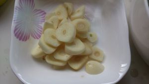 先放蒜瓣煸炒一会,喜欢的可以放点辣椒面