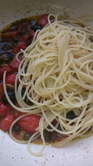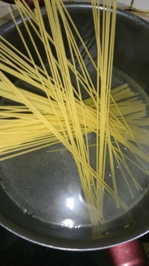 材料准备好以后,锅里放一点盐,把意面下锅煮8到9分钟