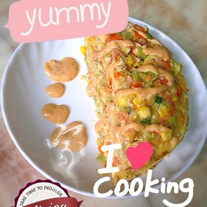 鸡蛋 面粉搅拌成糊 加上自己爱吃的配料