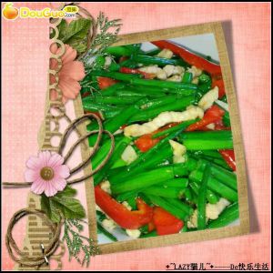 3.锅里放油,油温微微冒烟,关小火放肉丝炒散,微微变色捞出,将锅中的余油烧热(中火)目的是烧干油中多余的水分。你也可以重新放入新熟油炒菜(但口感会差些,比较浪费油。)然后,下入段状的韭菜苔炒一会儿,加入爆炒过的肉丝和红椒丝一起翻炒3分钟,最后,放入味精和少量的盐炒匀后即可出锅食用。